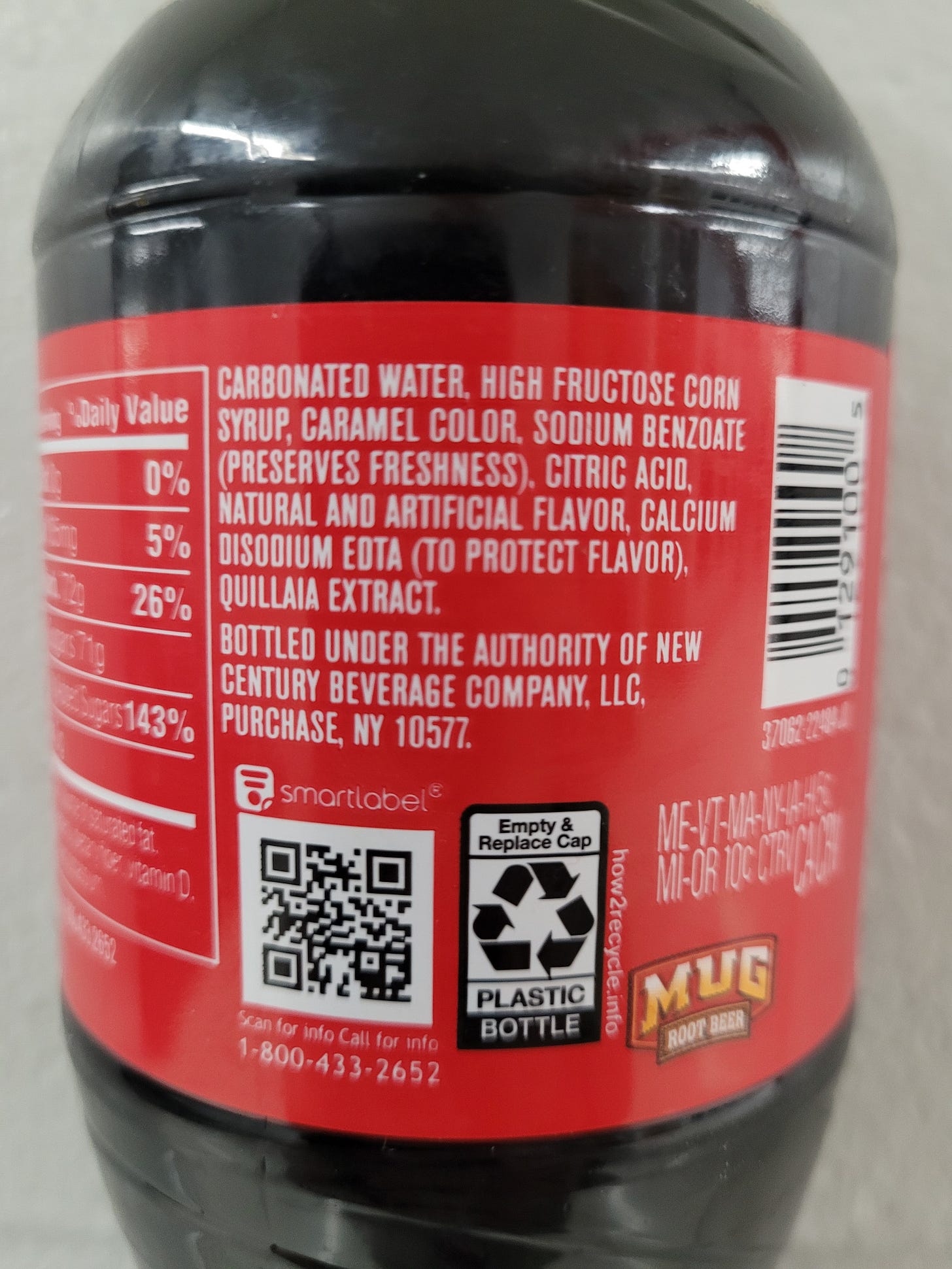Unfortunately, Mug uses high-fructose corn syrup as its sweetener. On the other hand, the drink is surprisingly made up of a small number of ingredients, most of which are ones I’ve heard of.